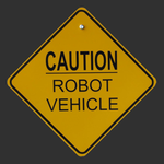 The visitor had passed the yellow diamond "Caution Robot Vehicle" sign on the driveway