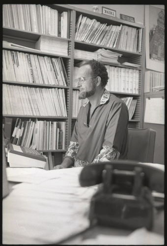 The Visitor sits in one of the two chairs across the paper strewn desk from LES Lester Earnest, the Executive Director of SAIL. The antique telephone in the foreground is not a collector's item. That telephone is a 1976 desk top model that is connected by copper wires to an analog circuit switching network.